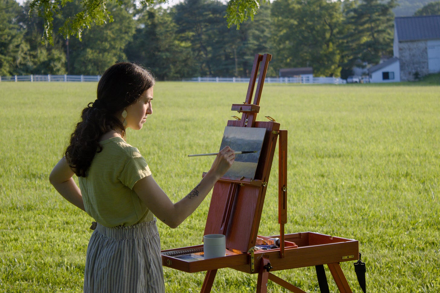 Also in July, artist Alexis Bocelli led an outdoor painting workshop on the farm! The result was an acrylic landscape painting, capturing the cool blues of a hazy summer evening. Aaron D. Brown captured plenty of amazing footage of the artist in action.