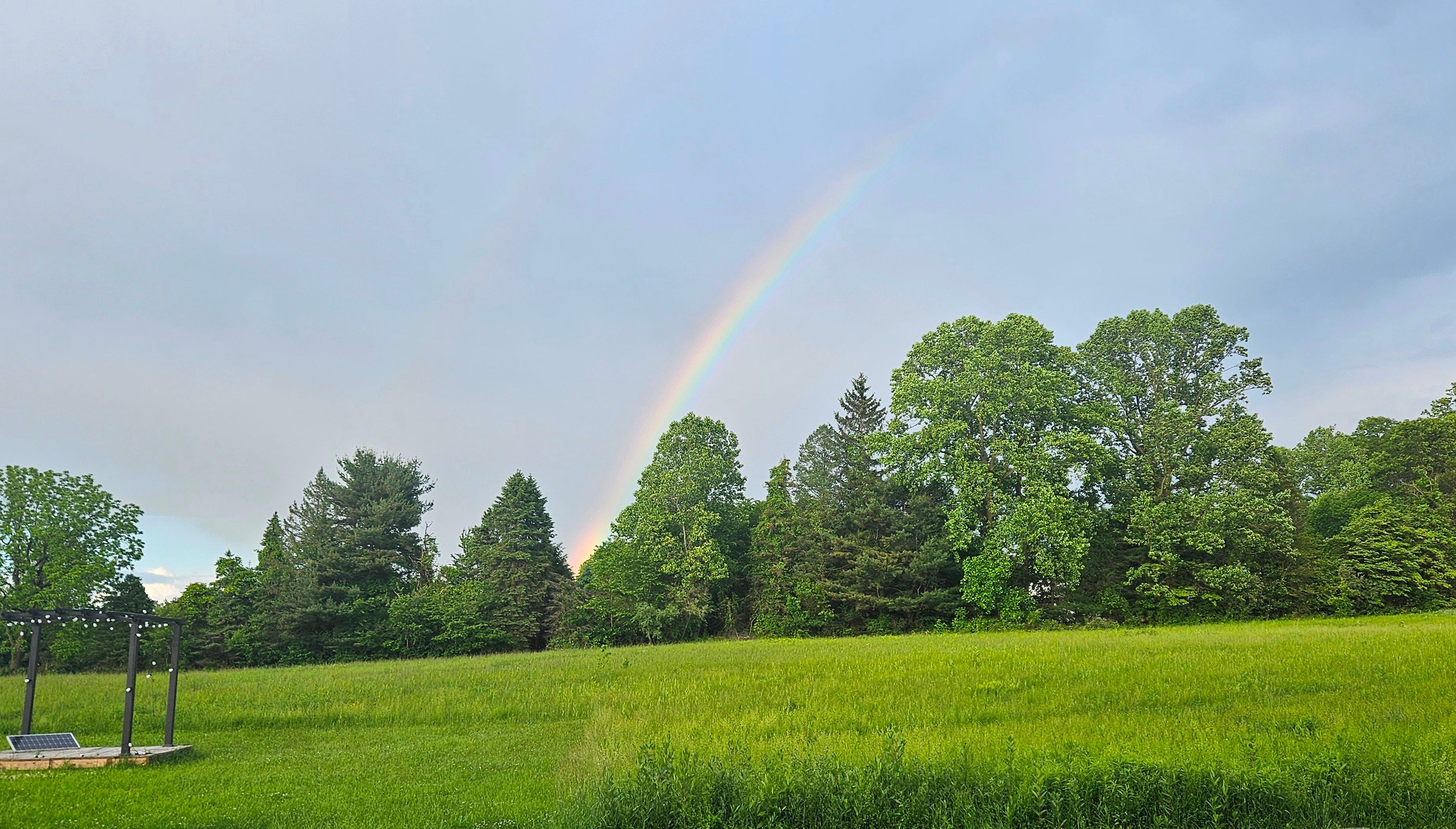 The rain cleared by the end of my walk leaving behind little raindrops and perfect photography lighting. There was even a rainbow later on.
