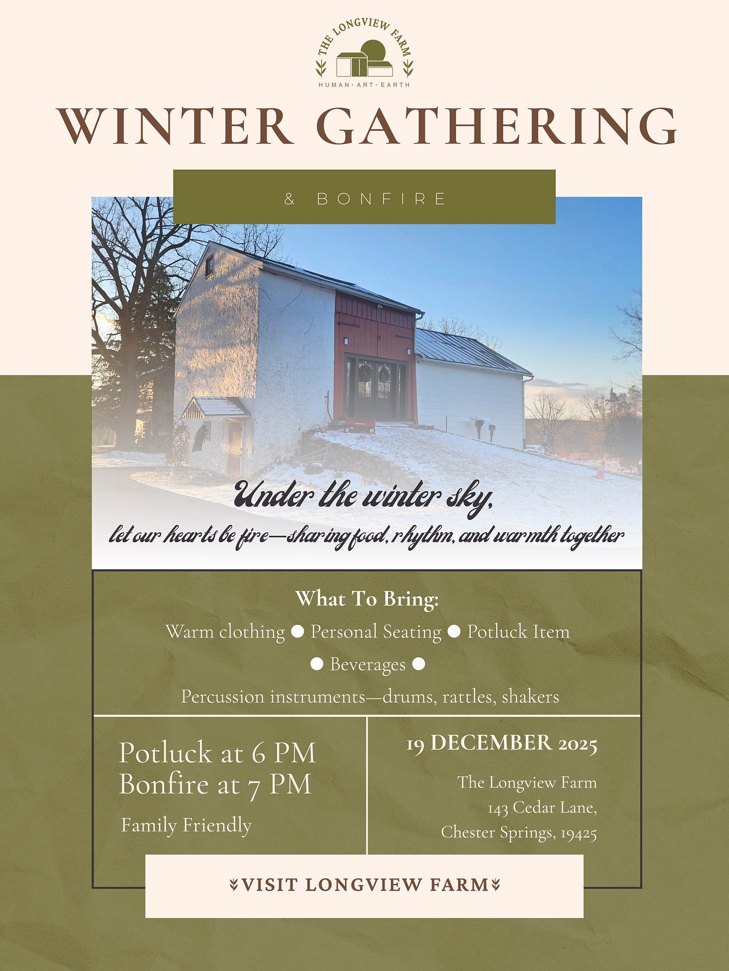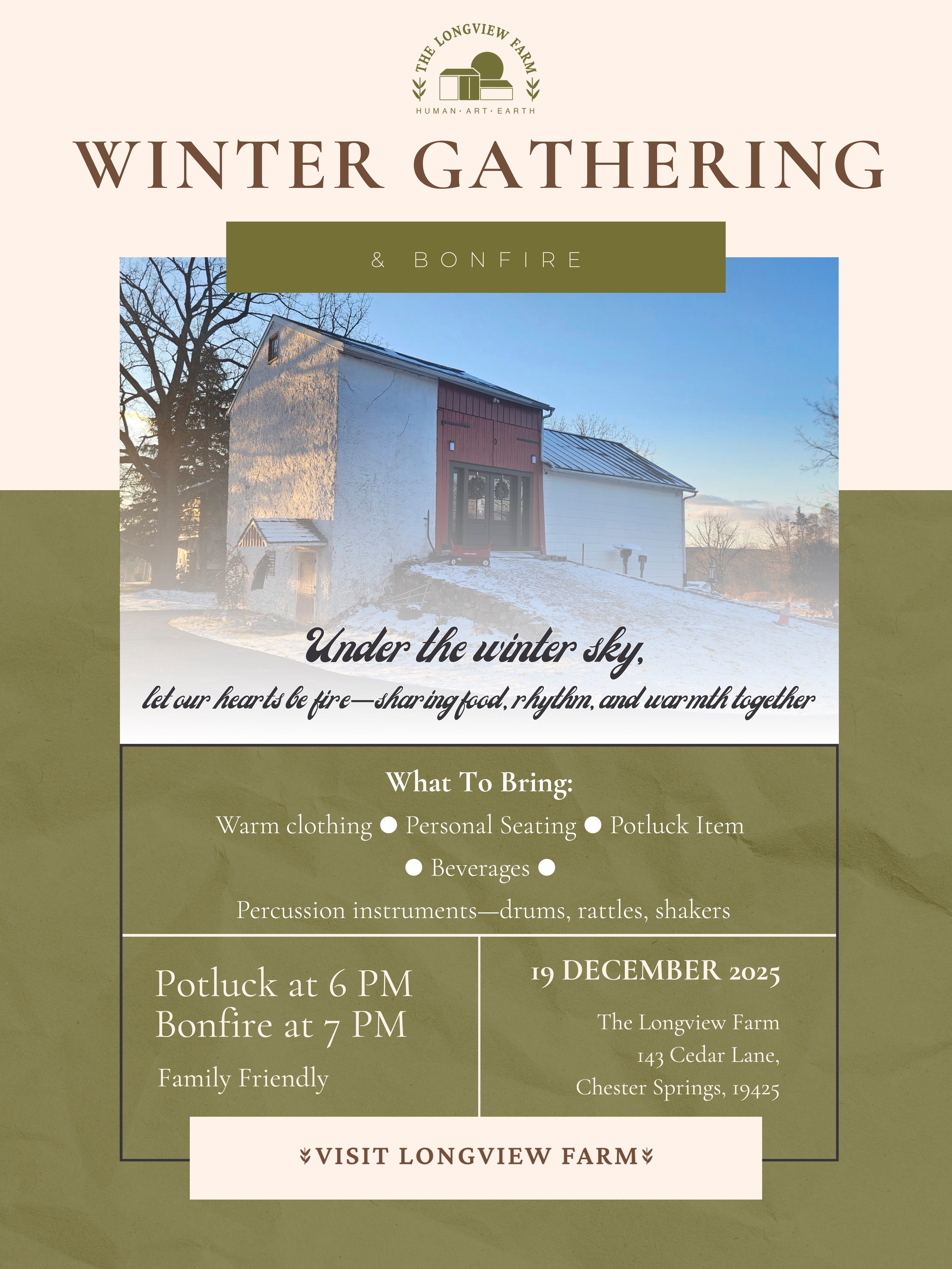 Longview Farm invites you and your loved ones to join us on the farm for this early Winter Solstice celebration! Please come prepared for the cold weather, bring a potluck item to share with the group, and register ahead of time.